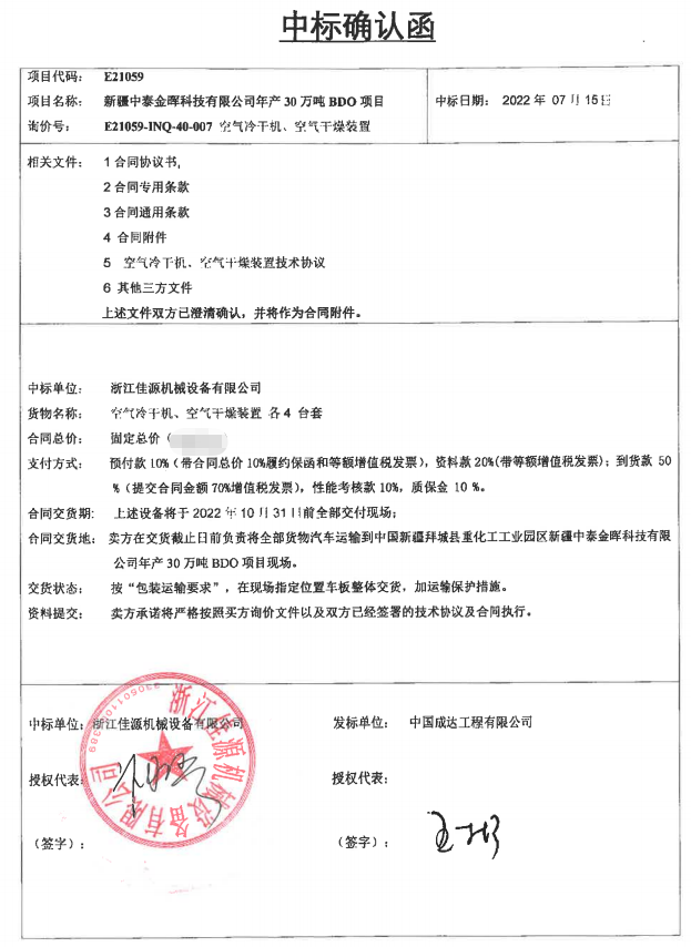 新(xīn)疆中泰金(jīn)晖科技有(yǒu)限公司年(nian)産30萬噸BDO裝(zhuang)置及配套(tào)設施項🔆目(mù)-空氣幹燥(zào)裝置項目(mu) 組合式幹(gan)燥機 4套